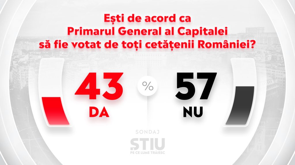 • 43% dintre respondenții sondajului ȘTIU PE CE LUME TRĂIESC sunt de acord ca Primarul General al Capitalei să fie votat de toți cetățenii României