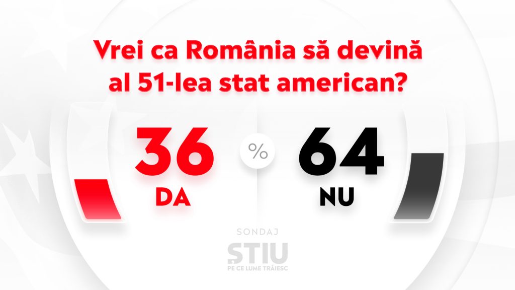 - 36% dintre respondenții sondajului ȘTIU PE CE LUME TRĂIESC vor ca România să devină al 51-lea stat american