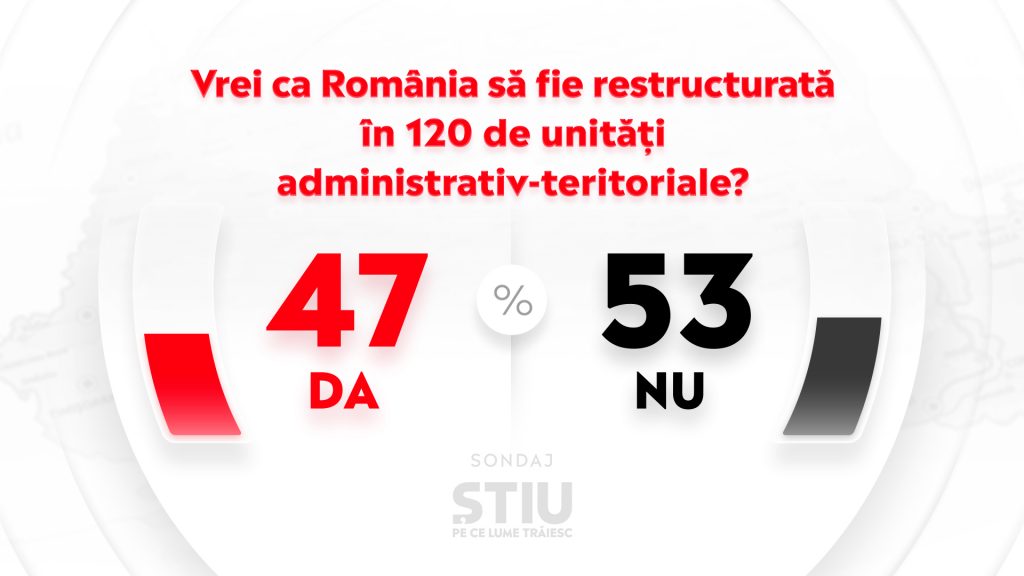 - 47% dintre respondenții sondajului ȘTIU PE CE LUME TRĂIESC vor ca România să fie reorganizată în 120 de unități administrativ-teritoriale