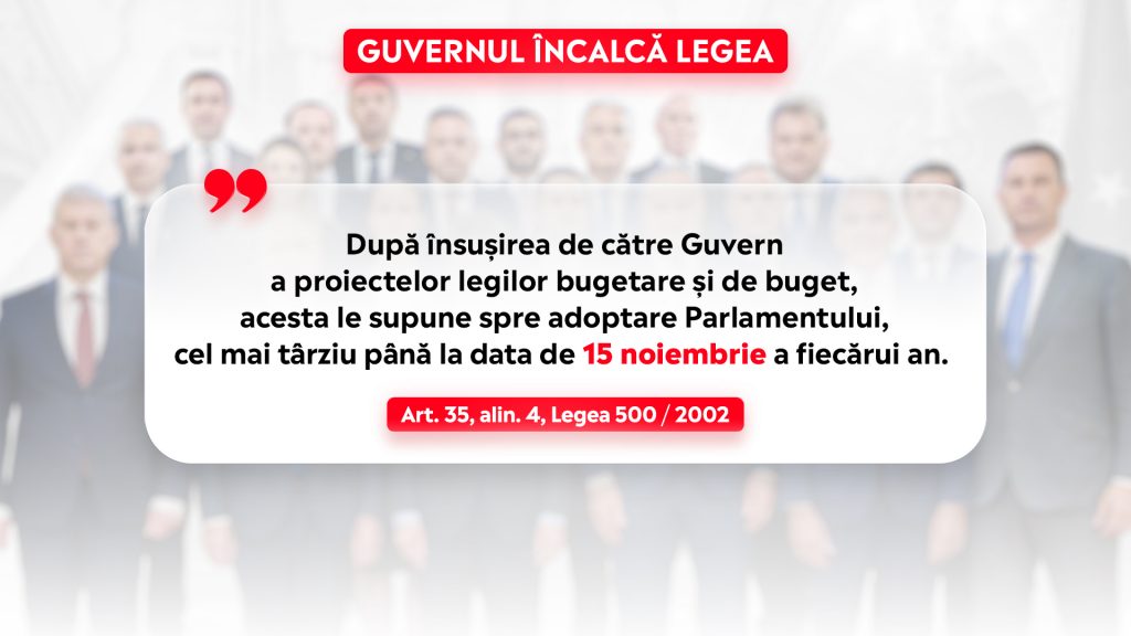 • Guvernul României este obligat, prin Lege, să depună bugetul la Parlament până la data de 15 noiembrie